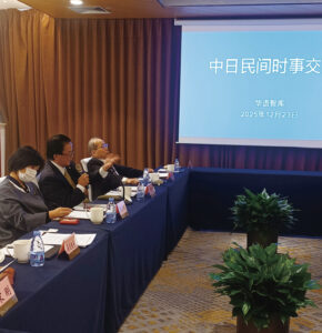 高市首相の「台湾有事存立危機事態」発言を機に日中関係の極度に緊張するなか、沖縄の中国訪問団が北京で友好交流を深めた。伊波洋一参議院議員を団長に参議院会派「沖縄の風」の団で12月21日から24日に北京を訪問訪問した。団員は、高良さちか参議院議員、髙良鉄美前新議員議員(沖縄社会大衆党委員長)で、広範な国民連合事務局長山本正治が随行した。
