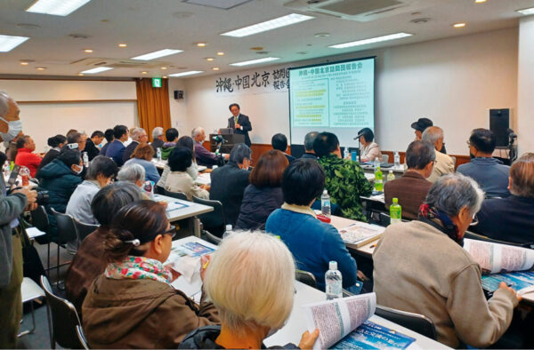 日中関係の緊張が高まる今回の訪中は、沖縄県民の平和と地域の安定を願う思いを中国側に直接伝え、地域の平和と安定をめざすことを目的としていた。会には各界の県民多数が駆けつけた。