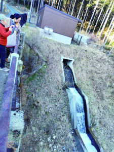 「え!この水量で600軒分の電力を賄えるの!」(野底川小水力発電所排水口)
