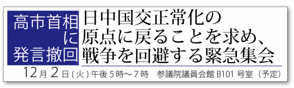 高市首相の「台湾有事は存立危機事態」発言は、日中国交正常化以来の日中関係の基礎と国益を大きく損ない、再び日中間の戦争を導きかねない重大な発言です。